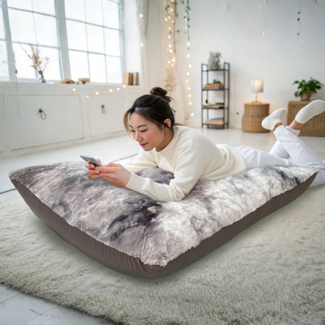Out Style ヘタリにくい ビーズクッション ビッグ 特大 日本製 発泡ビーズ 補充可 洗えるカバー 95x125x25cm フェイクファー ペルシア