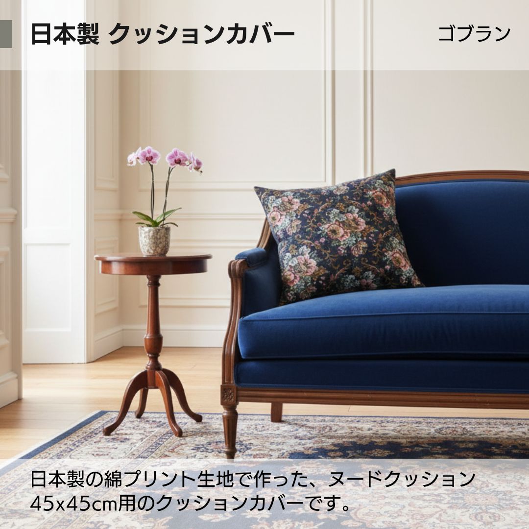 金鵄 クッションカバー 45x45cm 純日本製 コットンプリント 綿100% ゴブラン