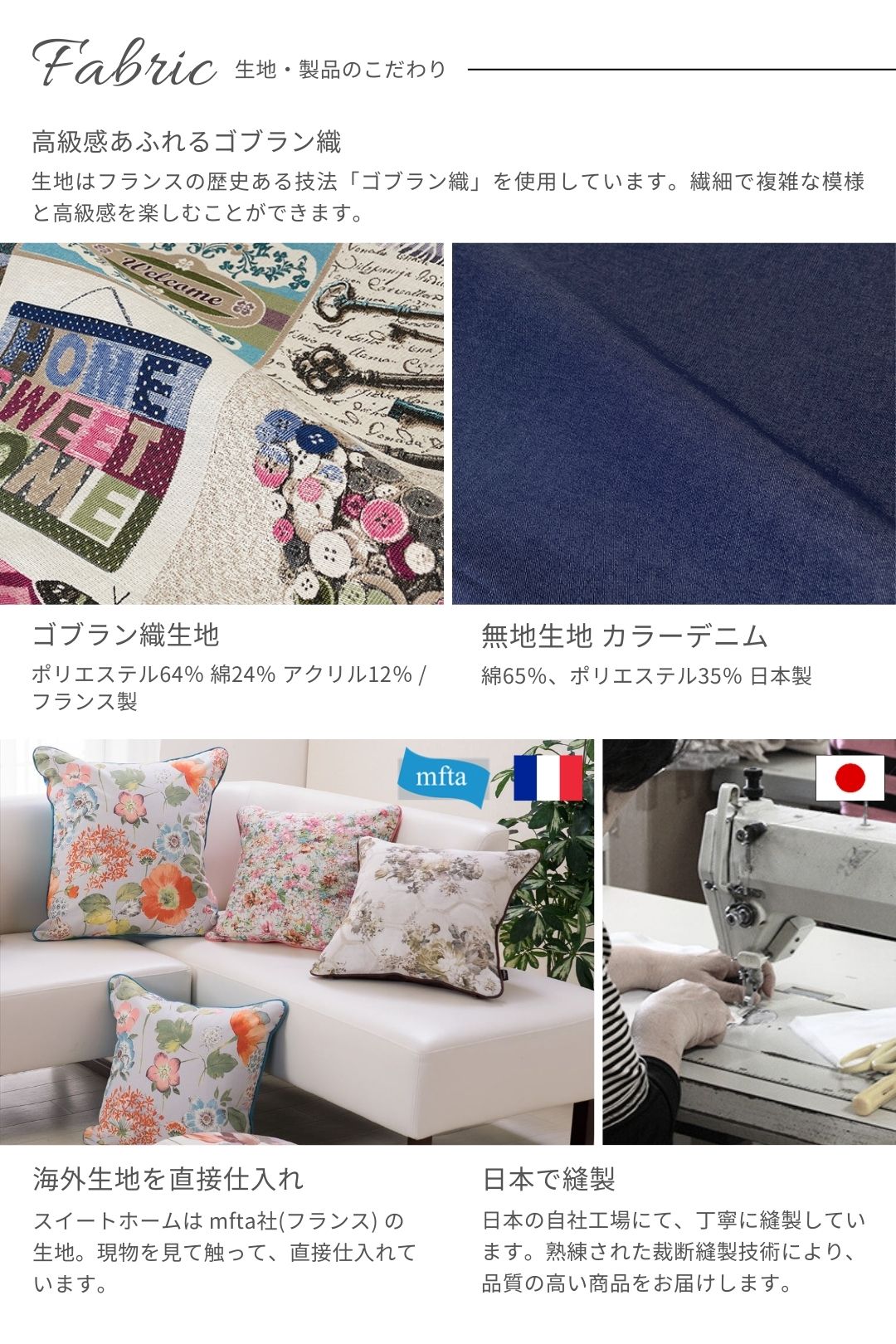 生地:ゴブラン織 ポリエステル64% 綿24% アクリル12% /フランス製