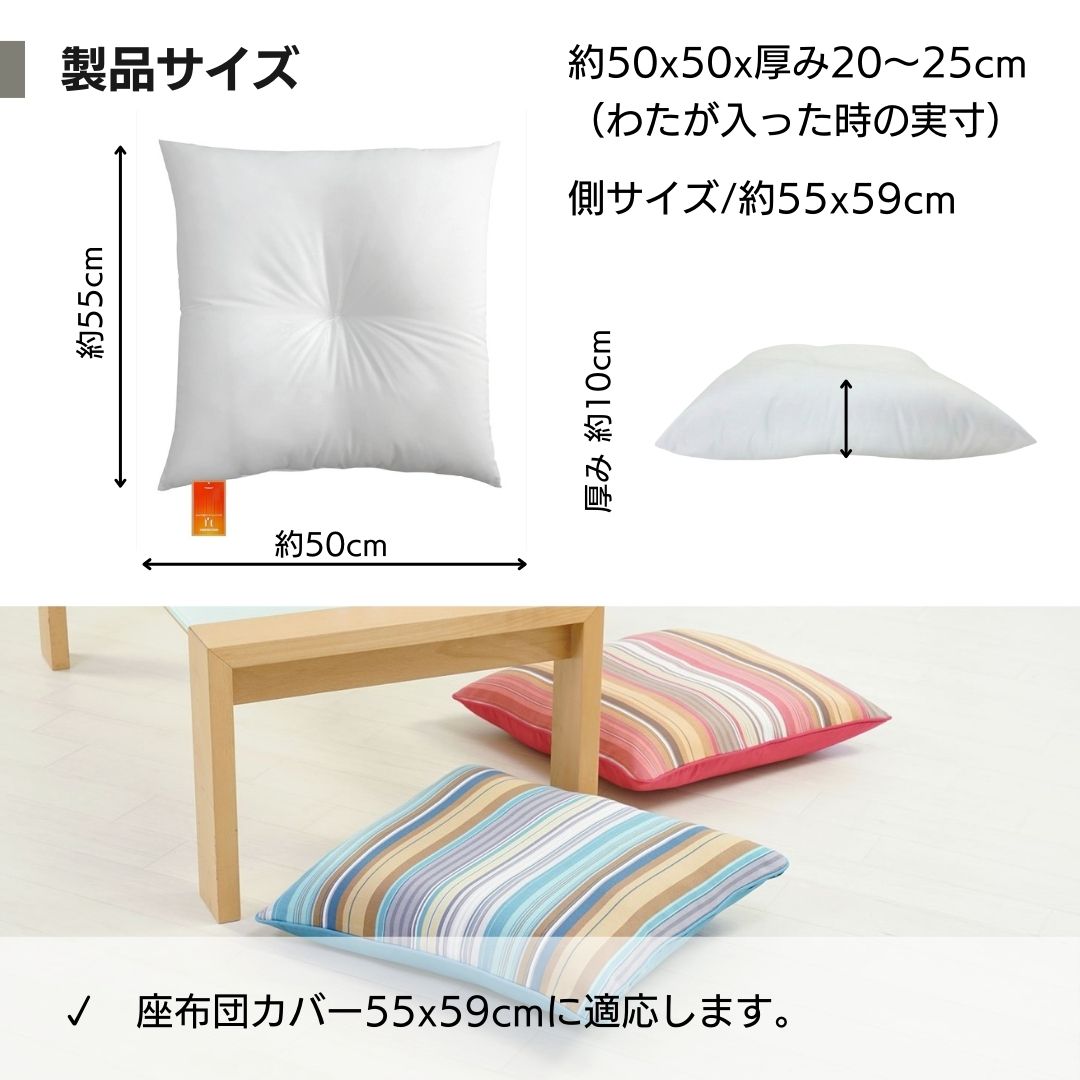 座布団カバー55x59cm用の中身。お使いのカバーを掛けてお使い下さい。