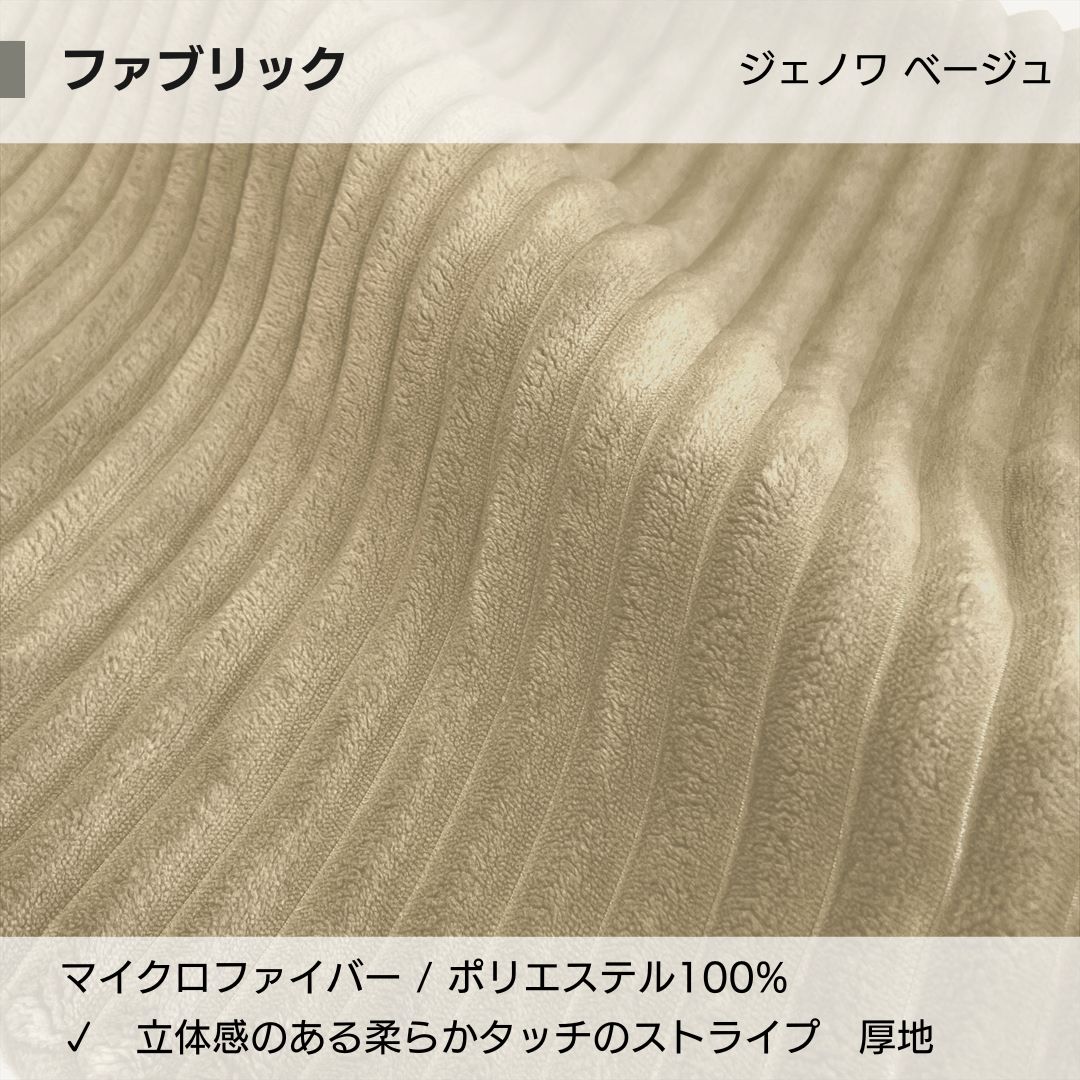 1. 立体感のある「コーデュロイ調」デザイン 太めのリブ(凹凸)加工を施すことで、表情豊かな仕上がりに。光の当たり方で生まれる柔らかな陰影が、お部屋に上質な温もりをプラスします。