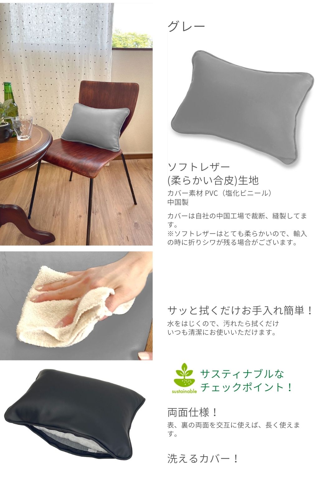 ソフトレザー素材のサッと拭くだけお手入れ簡単。柔らかタッチの合皮カバーです。