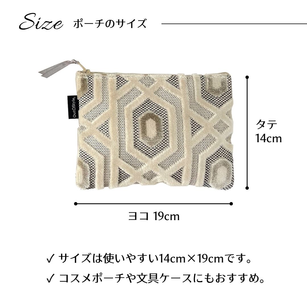 豪華で高級感のあるベルベットジャガード生地を使用したポーチ。