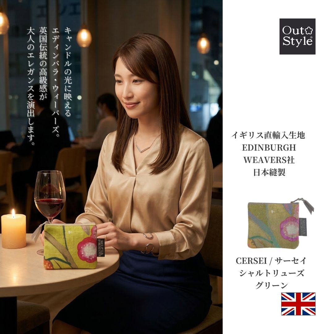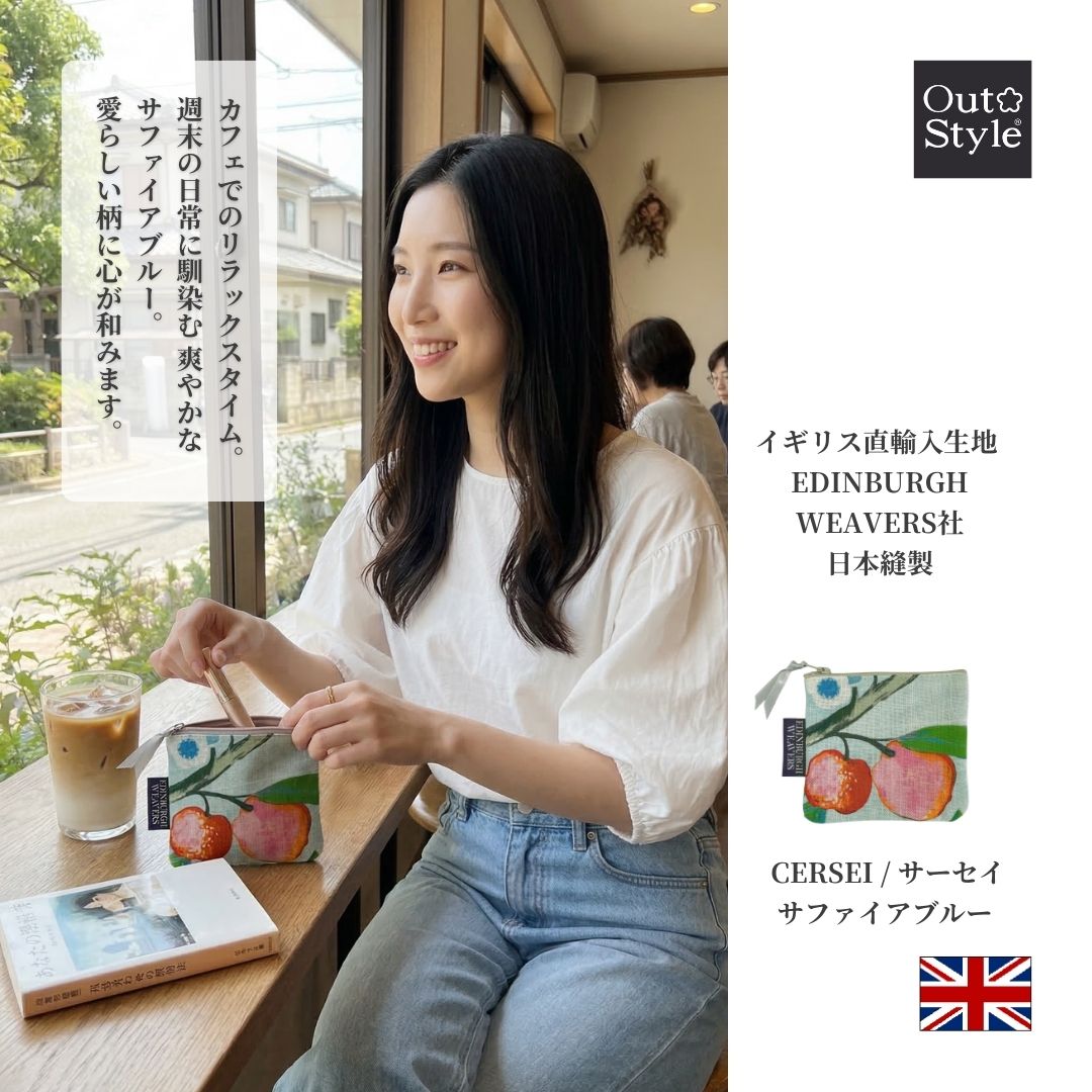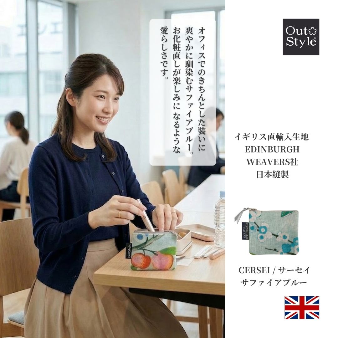 【Out Style公式】本来なら廃棄されてしまうはずだった最高級の輸入インテリアファブリックのハギレから生まれた、特別なミニポーチ。イギリス「EDINBURGH WEAVERS社」のリネンプリント生地を使用し、自社工場で丁寧に縫製した日本製です。「ポーチ・イン・ポーチ」でバッグの中を美しく整理できる、地球に優しいサステナブルなアイテムです。