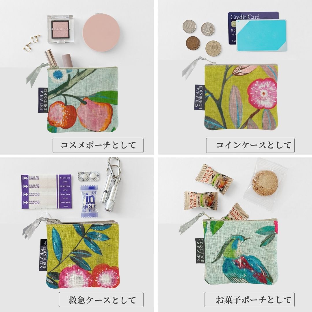 【Out Style】 サーセイ ミニポーチ 10×11cm イギリス製 輸入生地 リネンプリント 日本製 小物入れ コインケース サステナブル