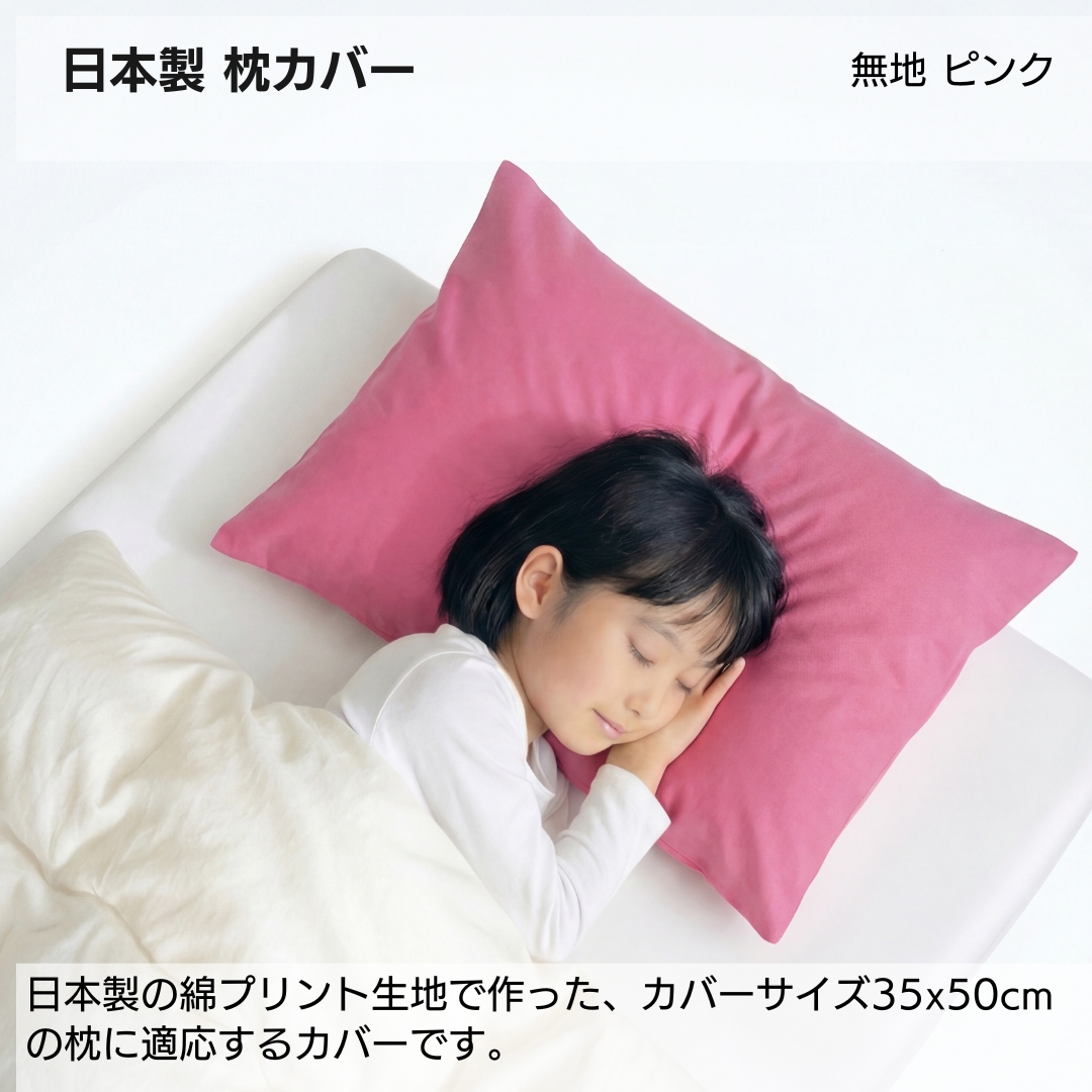 日本製 綿100% 枕カバー 無地カラー Sサイズ (35×50cm) ファスナーなし 合わせ式