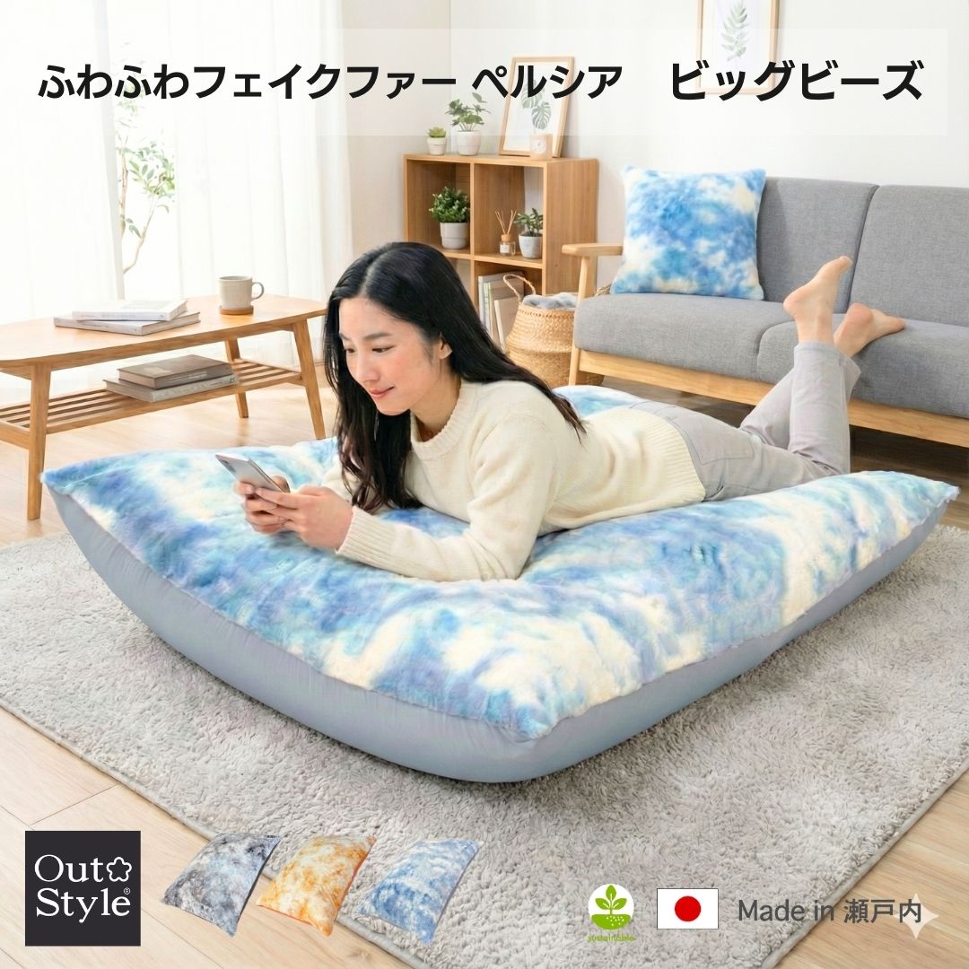 Out Style ヘタリにくい ビーズクッション ビッグ 特大 日本製 発泡ビーズ 補充可 洗えるカバー 95x125x25cm フェイクファー ペルシア