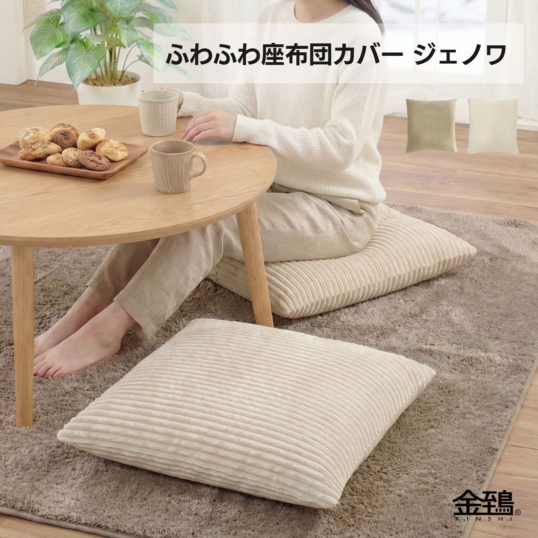 金鵄 座布団カバー 55x59cm ふわふわ コーデュロイ調 マイクロファイバー ジェノワ