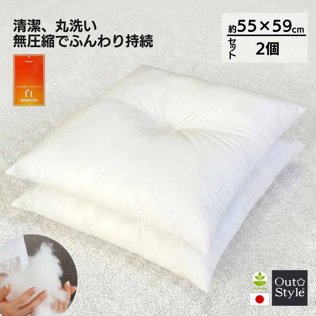 Out Style ヌード座布団 東レ テトロン FT 座布団カバー 55x59cm用 丸洗い 銘仙判 日本製 高反発 2枚セット