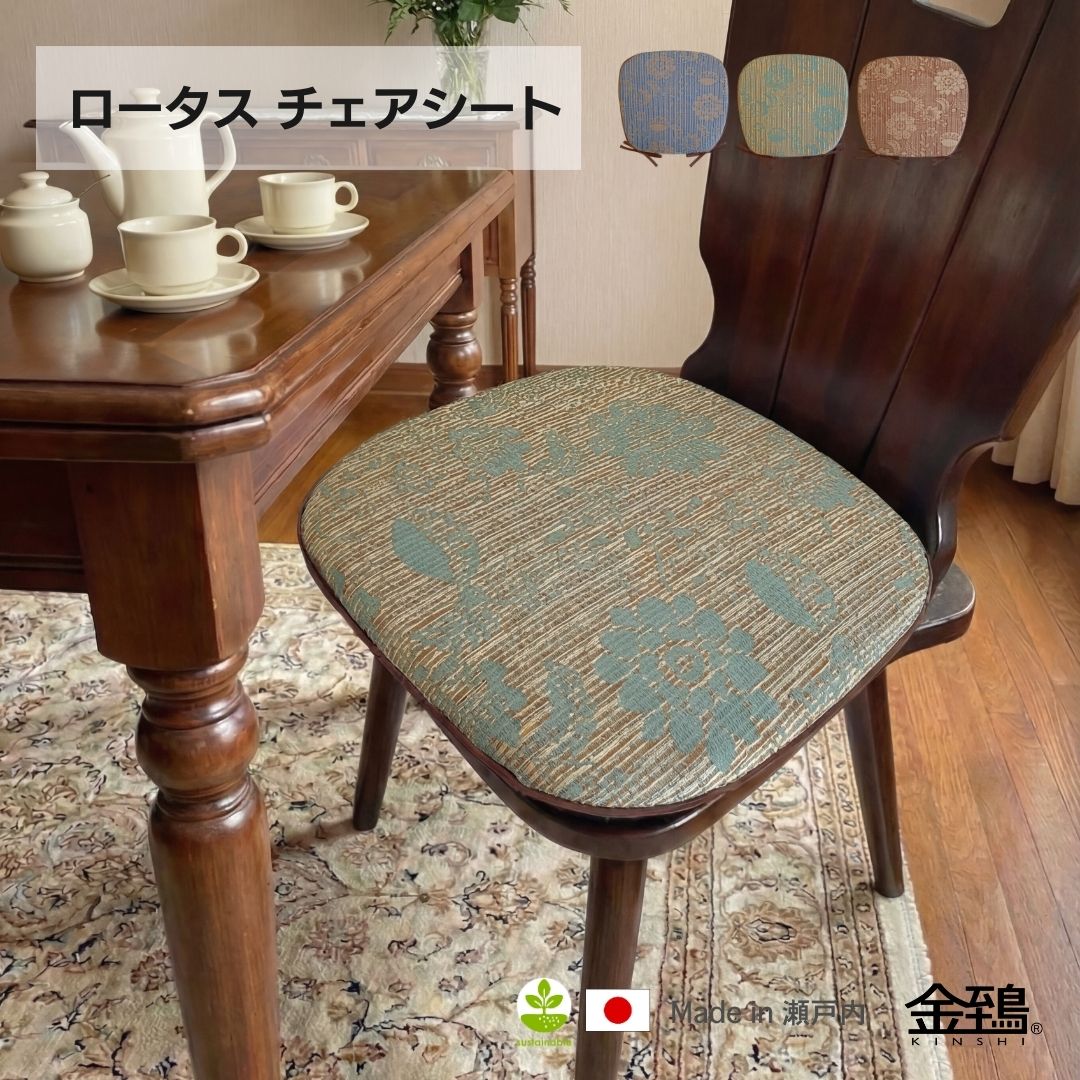 金鵄 ダイニング クッション 小 42×40×3cm ヒモ付き 馬蹄型 光沢ジャガード ロータス