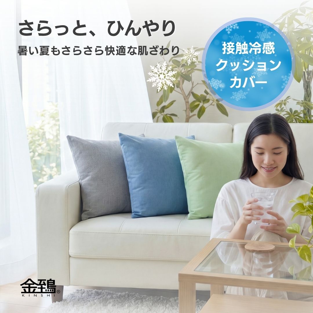 金鵄 ひんやり 接触冷感 クッションカバー 45×45cm マルモア 夏用 洗える さらさら 杢調 ナイロン100%