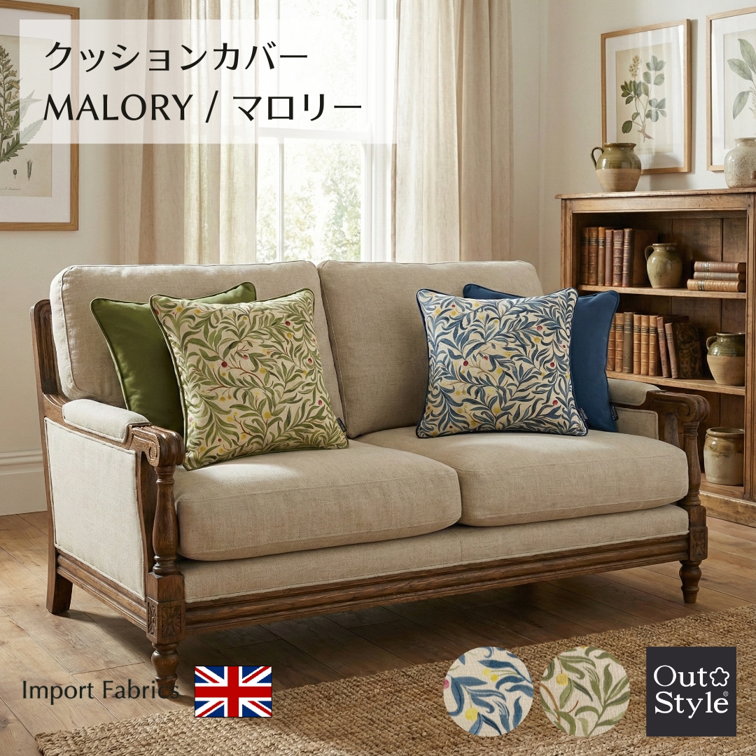 Out Style クッションカバー インポート45x45cm 輸入生地 花柄 イギリス リネンプリント マロリー