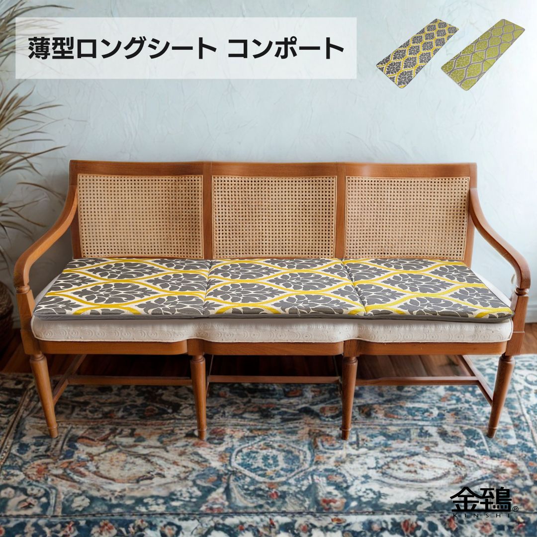 金鵄 ロングシートクッション ソファパッド 44x126x3cm 薄型 座布団 光沢ジャガードコンポート